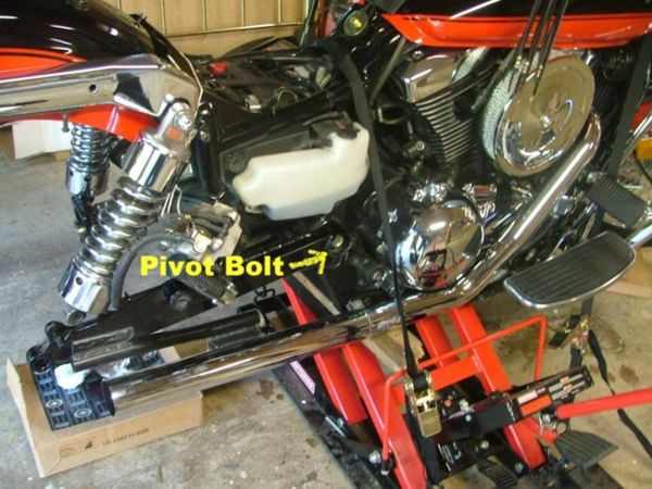Caution! You are going to be removing a lot of heavy items from the rear of your bike. Be sure to place something under your front tire while the bike is on the lift to prevent the bike from falling forward off the lift. This could really mess up your day.